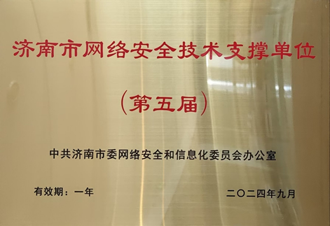 活動現(xiàn)場為第五屆濟南市網(wǎng)絡(luò)安全應(yīng)急技術(shù)專家、網(wǎng)絡(luò)安全技術(shù)支撐單位、2024年濟南市網(wǎng)絡(luò)安全大賽獲獎?wù)叽怼⑶嗌倌昃W(wǎng)絡(luò)安全宣傳作品征集活動優(yōu)秀組織單位進行頒獎。同時,為參加2024年山東省網(wǎng)絡(luò)安全大賽的濟南代表隊現(xiàn)場授旗。新潮信息憑借過硬的網(wǎng)絡(luò)安全技術(shù)實力和安全服務(wù)保障能力,連續(xù)五屆獲得“濟南市網(wǎng)絡(luò)安全技術(shù)支撐單位”稱號,同時公司多名技術(shù)人員再次榮獲“第五屆濟南市網(wǎng)絡(luò)安全應(yīng)急技術(shù)專家”稱號。