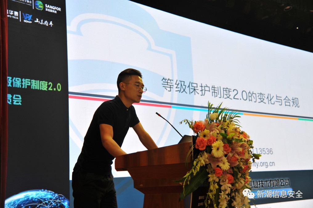 山東新潮信息技術(shù)有限公司作為本次宣貫會的主要協(xié)辦單位和等級保護(hù)測評機(jī)構(gòu)代表,從“等級保護(hù)制度2.0的變化與合規(guī)”方面做了詳細(xì)的闡述和講解。