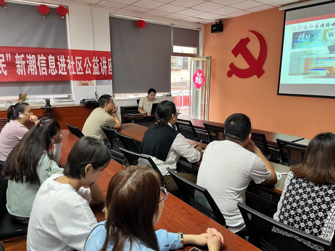 為增強(qiáng)社區(qū)居民的網(wǎng)絡(luò)安全意識(shí)和防范能力,預(yù)防網(wǎng)絡(luò)詐騙帶來(lái)的經(jīng)濟(jì)損失,營(yíng)造安全、健康、文明的網(wǎng)絡(luò)環(huán)境。山東新潮信息黨支部在國(guó)家網(wǎng)絡(luò)安全宣傳周之際,走進(jìn)社區(qū)開展以“網(wǎng)絡(luò)安全為人民,網(wǎng)絡(luò)安全靠人民”為主題的公益講座。