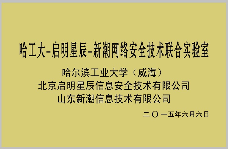 2015年6月6日,山東新潮信息技術(shù)有限公司與哈爾濱工業(yè)大學(xué)(威海)、北京啟明星辰信息安全技術(shù)有限公司就成立“網(wǎng)絡(luò)安全技術(shù)聯(lián)合實(shí)驗(yàn)室”達(dá)成了協(xié)議