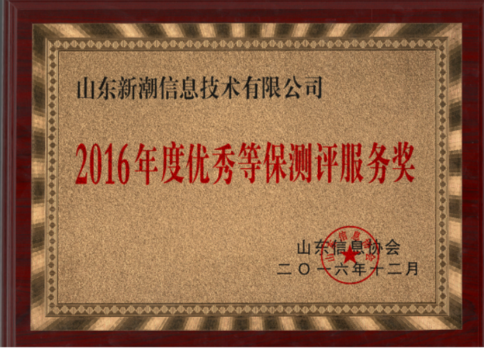 2016 年,在省公安廳網(wǎng)安總隊、省等保辦和山東省信息網(wǎng)絡(luò)安全協(xié)會的指導(dǎo)下,各信息網(wǎng)絡(luò)安全產(chǎn)品廠商、服務(wù)商緊緊圍繞山東省網(wǎng)絡(luò)安全等級保護工作部署,以深入開展網(wǎng)絡(luò)安全等級保護工作為契機,真抓實干,大力推進信息網(wǎng)絡(luò)安全建設(shè)和應(yīng)用,有效提升了全省重要信息系統(tǒng)和重要網(wǎng)站整體安全防護能力,為推動全省信息安全保護工作做出了重要貢獻。在實施“網(wǎng)絡(luò)安全等級保護建設(shè)整改”和“重點網(wǎng)站安全防護”服務(wù)工作中涌現(xiàn)了一大批優(yōu)秀服務(wù)商。 我公司憑優(yōu)秀表 現(xiàn)獲得“2016年度優(yōu)秀等保測評服務(wù)獎”