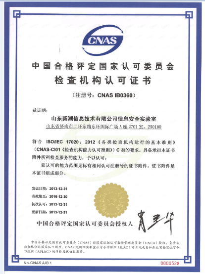 熱烈祝賀我公司獲得由中國合格評定國家認(rèn)可委員會頒發(fā)的檢驗(yàn)機(jī)構(gòu)認(rèn)可證書,此證書成為我公司的又一里程碑。